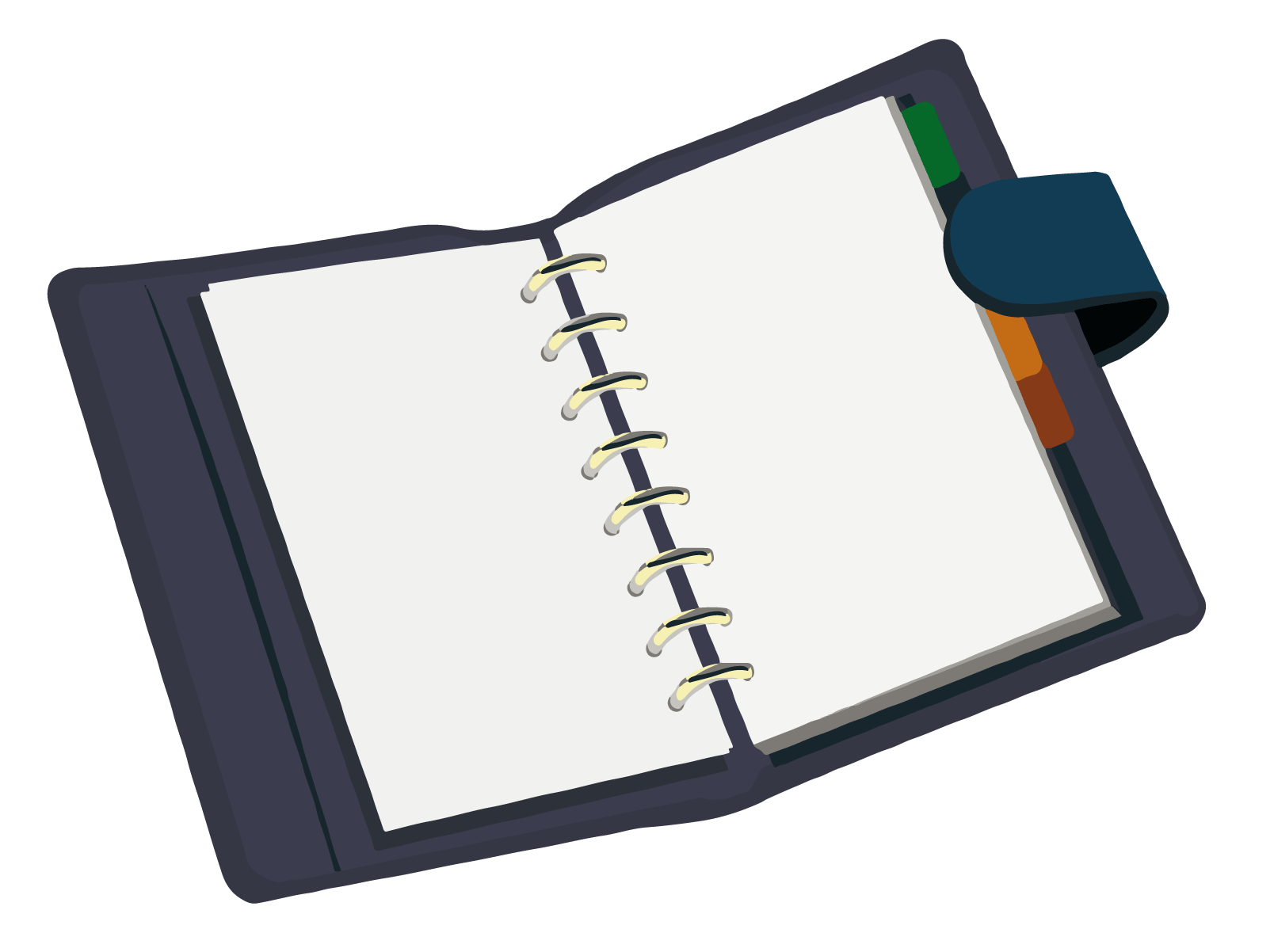 Ilustración de una agenda sencilla en formato vectorial editable. Dibujo de la agenda abierta. Dos colores, azul y rojo.