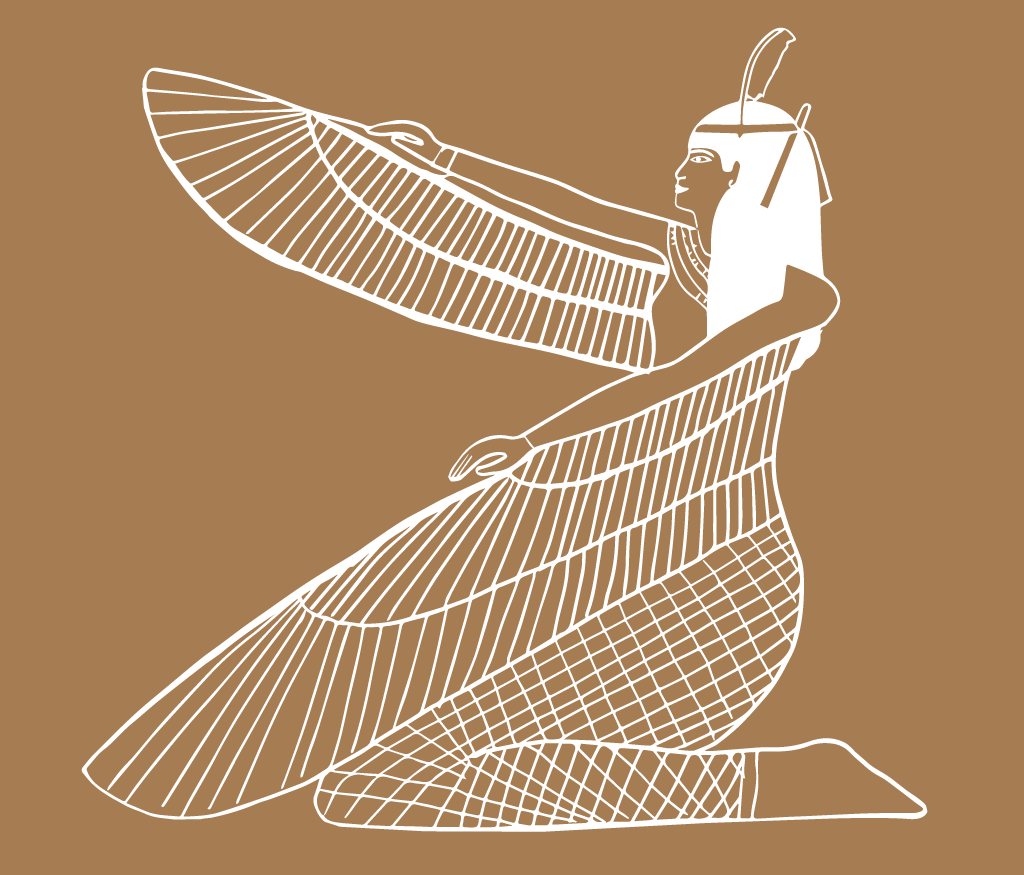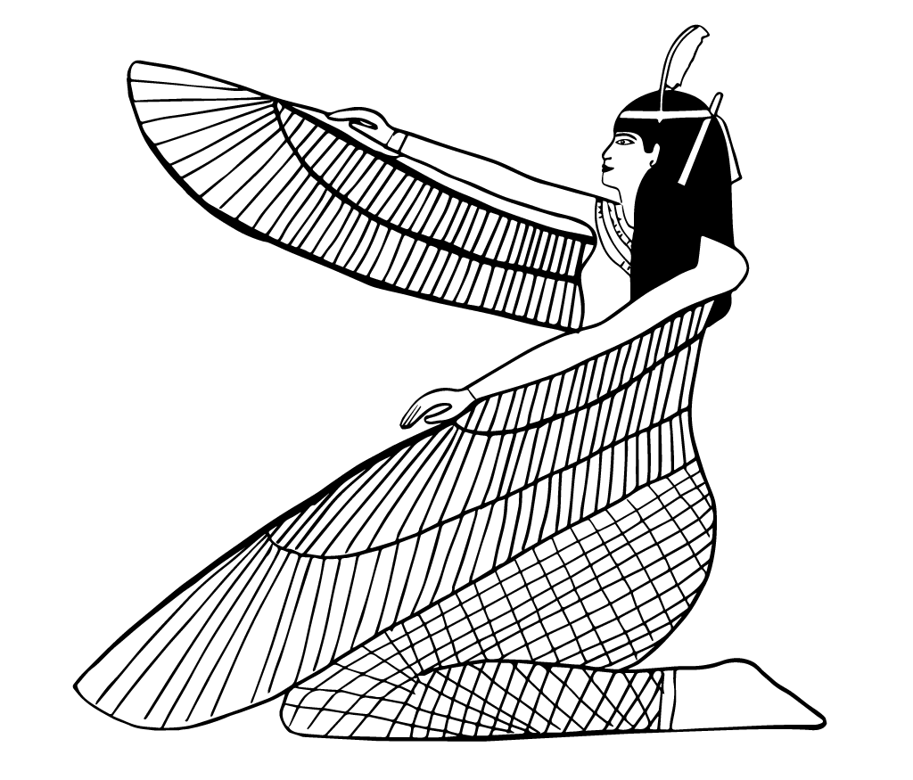 Ilustración del Arte Egipcio donde podemos ver a la diosa Isis desplegando sus alas, que se ven de perfil, al modo egipcio. Versión en blanco y negro y en colores. Descargar el archivo en formato SVG vectorial, escalable y editable para modificar la ilustración y adaptarla a tu diseño.