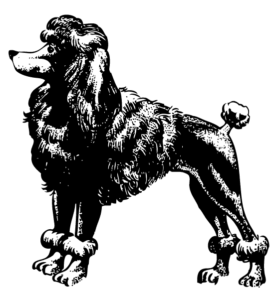 El perro Caniche es también conocido como el Perro de aguas o poodle. Es una de las razas de perro más apreciadas. Hay muchas variedades de color de pelo aunque son más famosos los blancos, plata, albaricoque y negro. De orejas largas y ojos expresivos. El dibujo muestra un caniche negro con un corte de pelo.