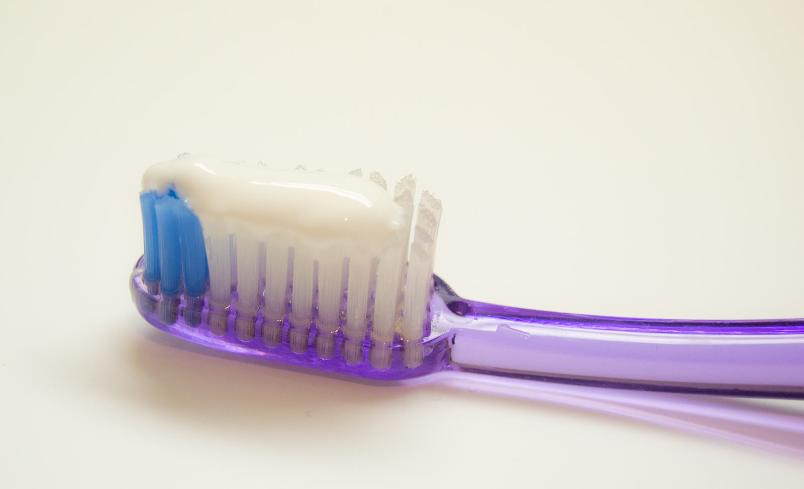 Fotografía original de un cepillo de dientes con pasta dentrífica