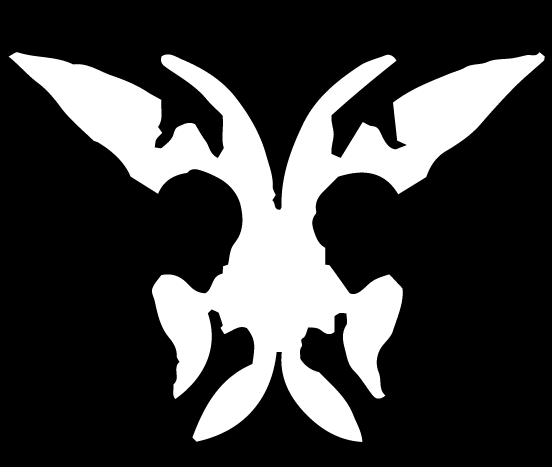 Dibujo con dos hombres en negro o un insecto con alas / mariposa en blanco.