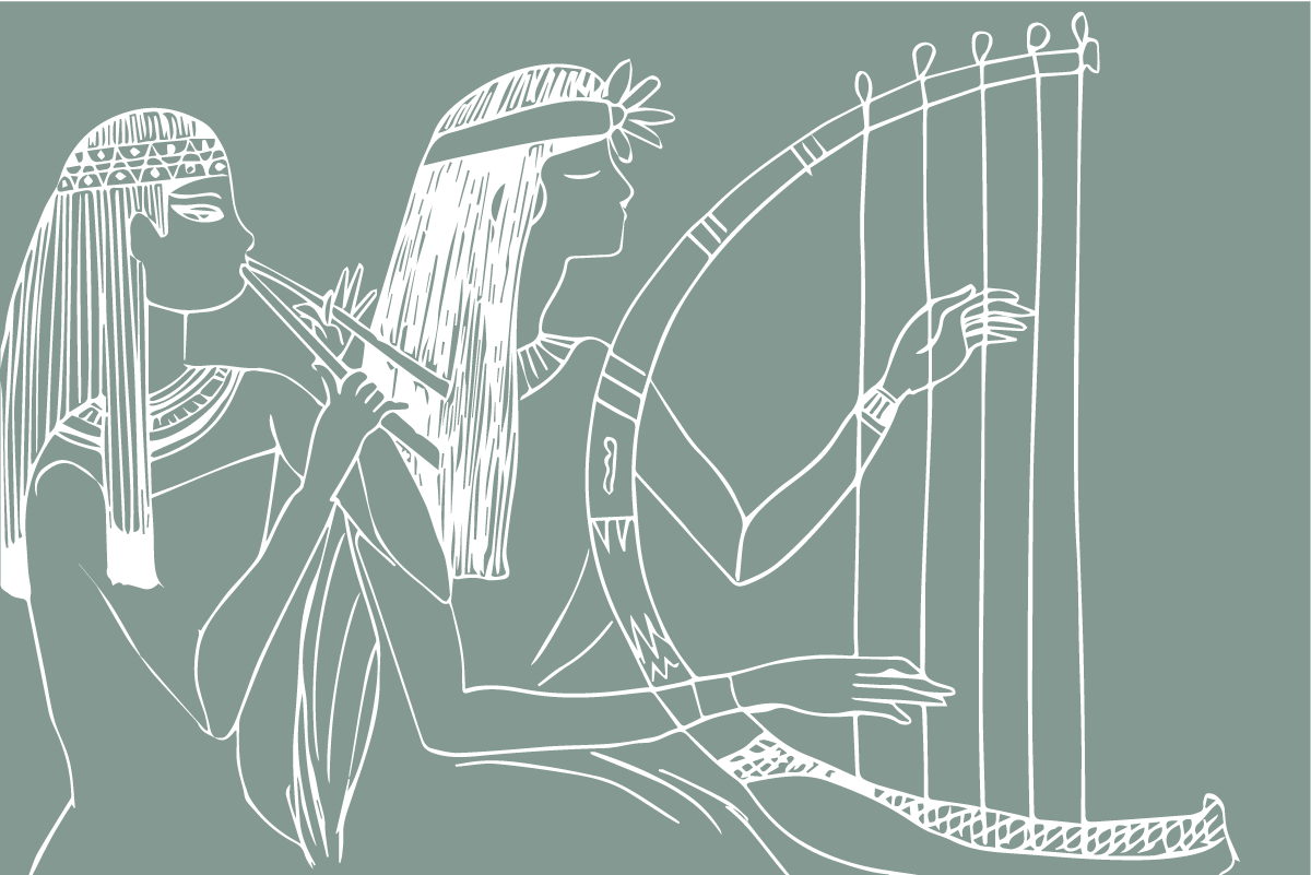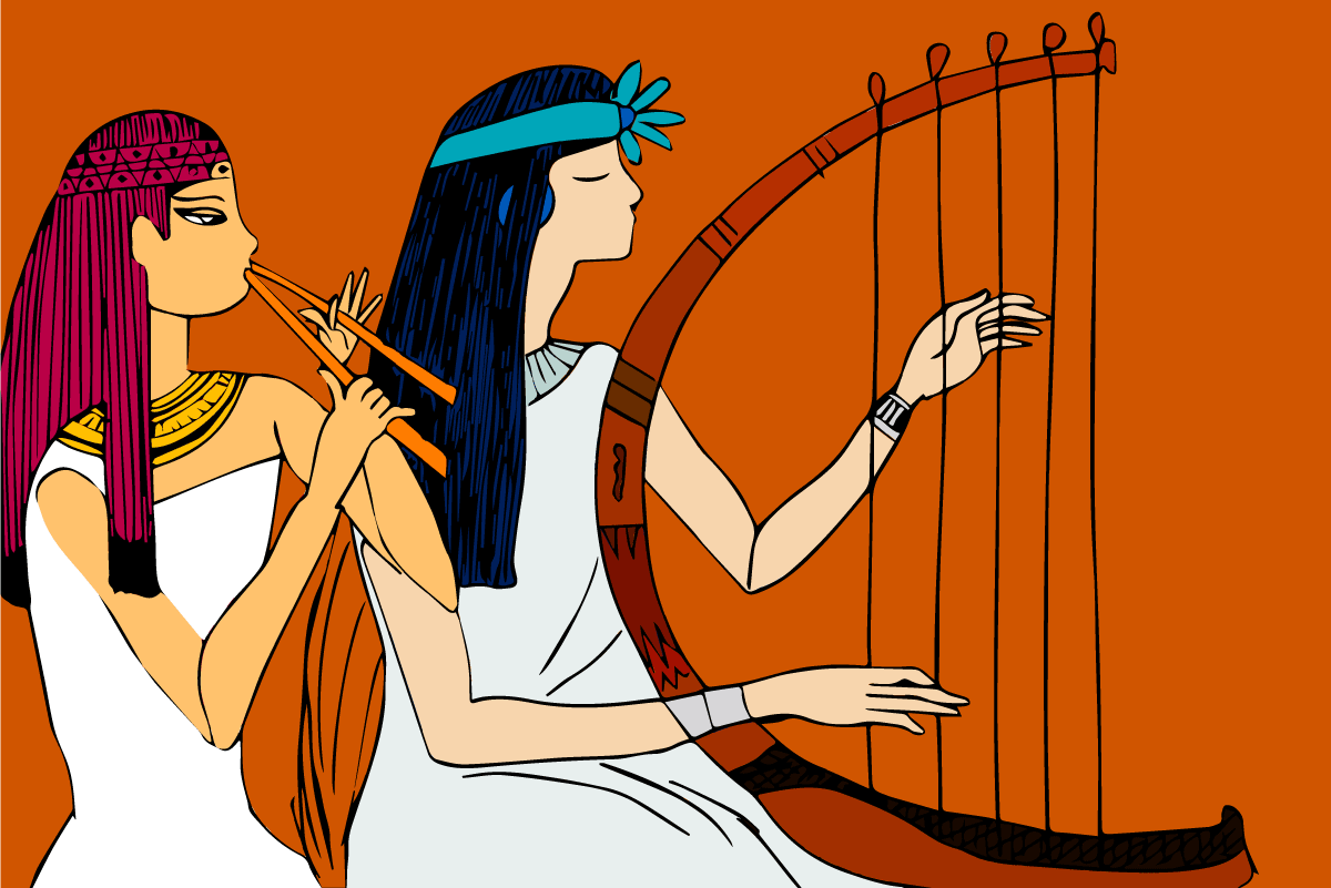 Ilustración con dos mujeres egipcias tocando música