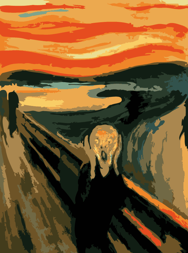 Illustration from the famous painting “The Scream” by Edvard Munch. With undulating color reduction. Simplified illustration of the original painting.