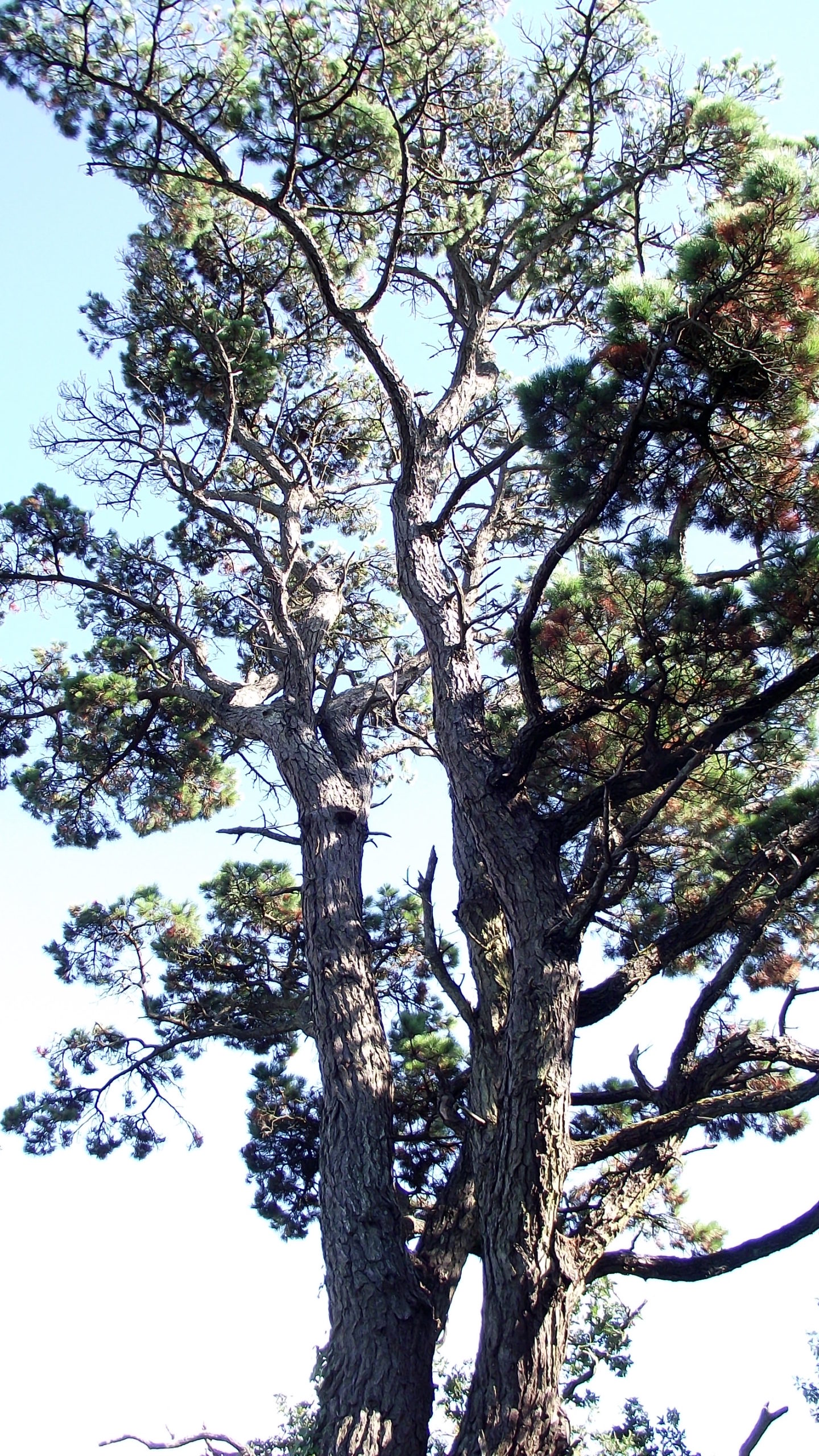 A cette occasion, je présente plusieurs images avec le même thème. Un grand pin grand et fin. Trois fichiers différents peuvent être téléchargés. Photographie originale, peinture numérique et image de fond avec design graphique.