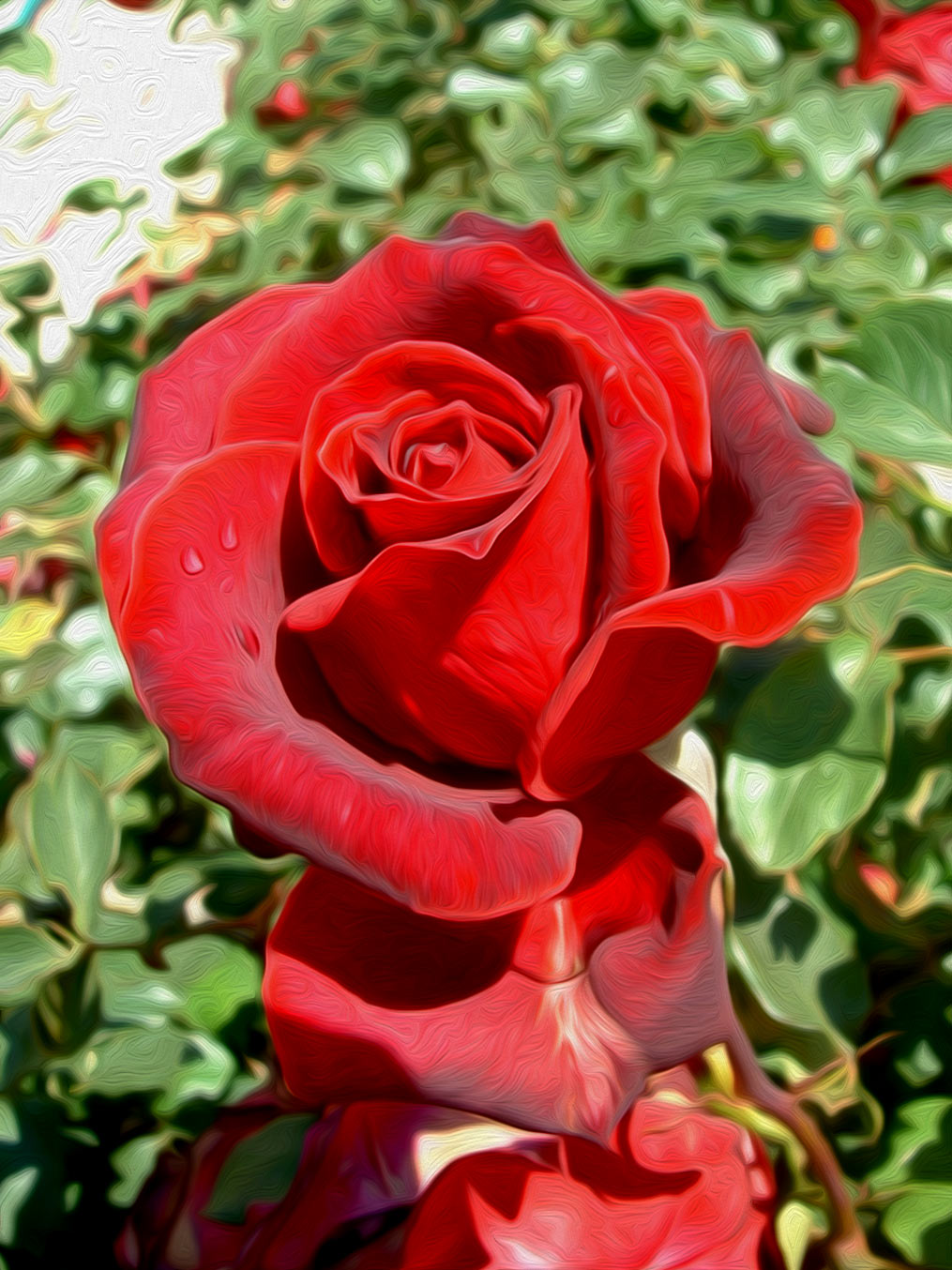 Big forte roses rouges écarlate, rouge profond. Style de l’huile Traçages Traçages très doux. Peinture numérique.