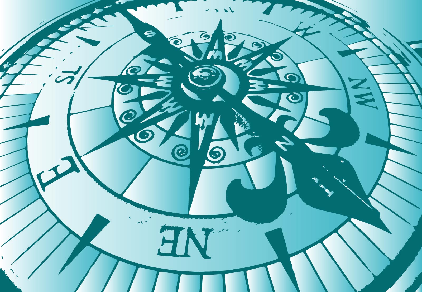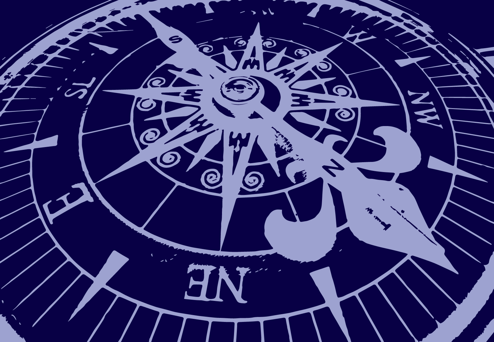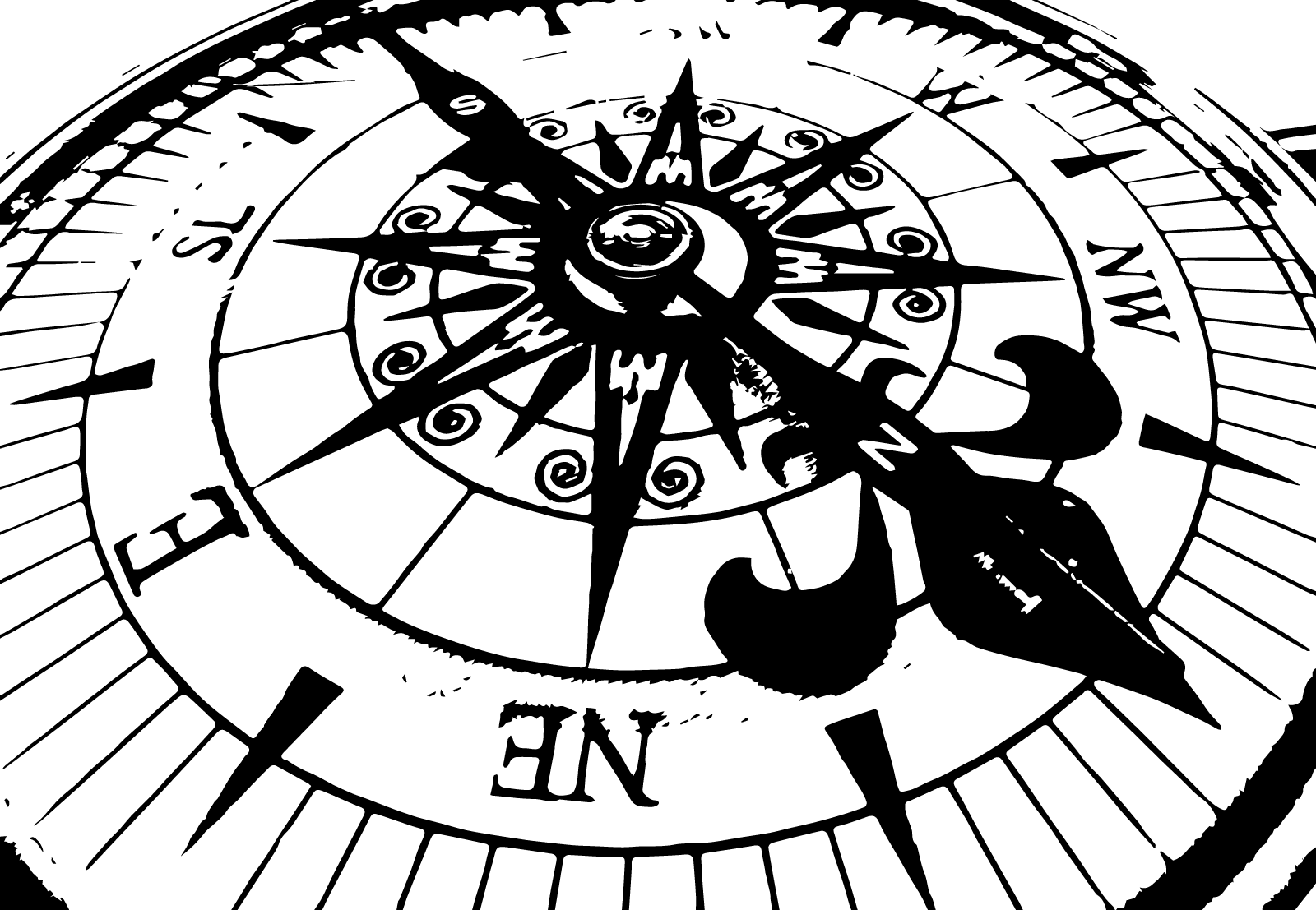 Ilustración con la esfera de una brújula para navegantes. Símbolos del Norte, Sur, Este y Oeste, una gran aguja imantada apuntando hacia los polos norte y sur. Varias versiones, en positivo y negativo. Descargar el archivo en formato SVG vectorial, escalable y editable para modificar la ilustración y adaptarla a tu diseño.