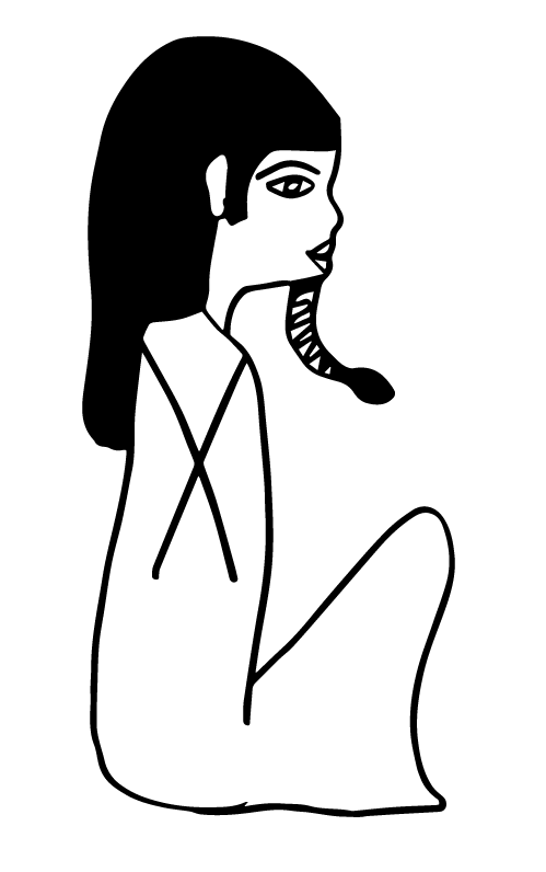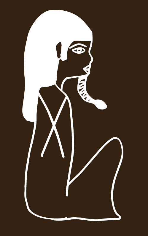 Drawing of a seated Egyptian figure with knees raised, profile view. It symbolizes a small Egyptian pharaoh costume with his big head and the snake on the chin. Download vector file, scalable and editable SVG format to modify and adapt it into your illustration design.