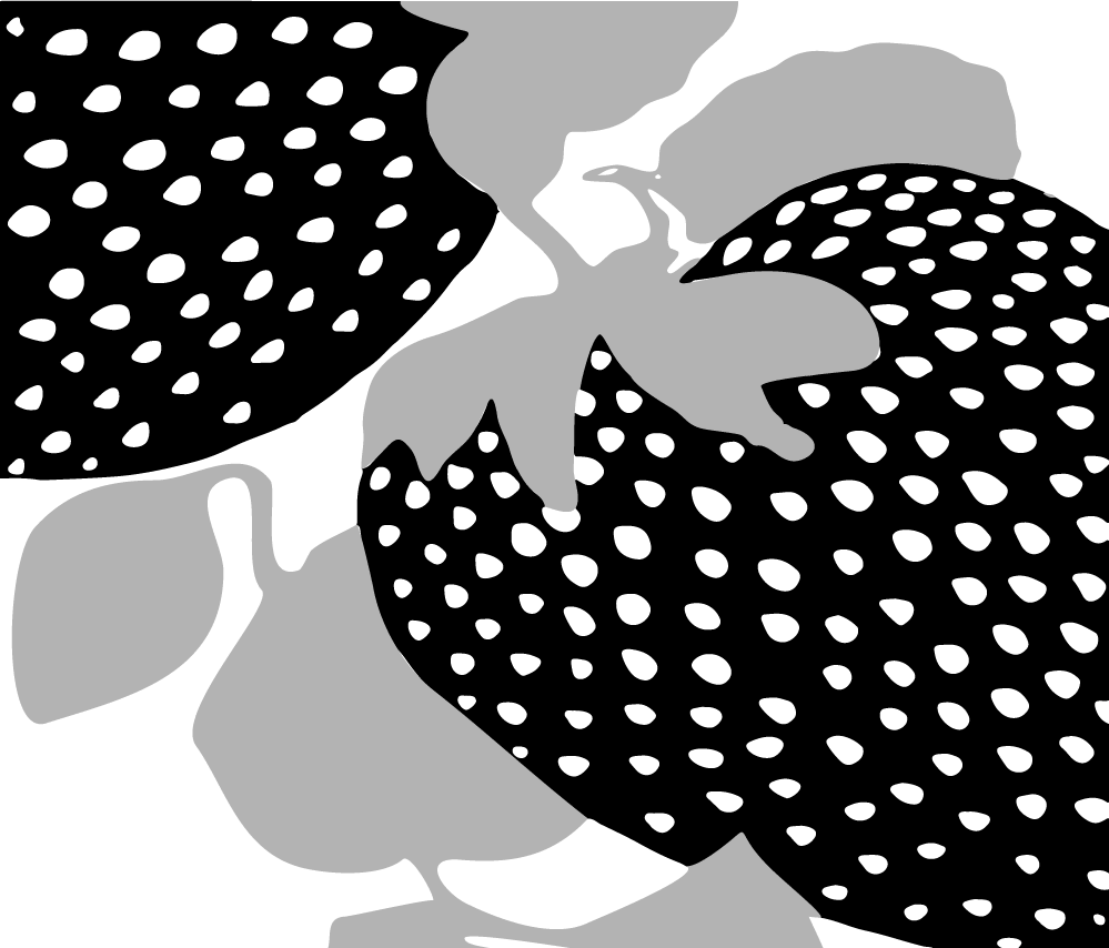 Illustration with the forms of some strawberries, with little nuggets or seeds and some leaves. Several versions, red and green colors and also in black and white, and even other games in color. Download the image file, scalable and editable vector format SVG to modify illustration and adapt to your design.