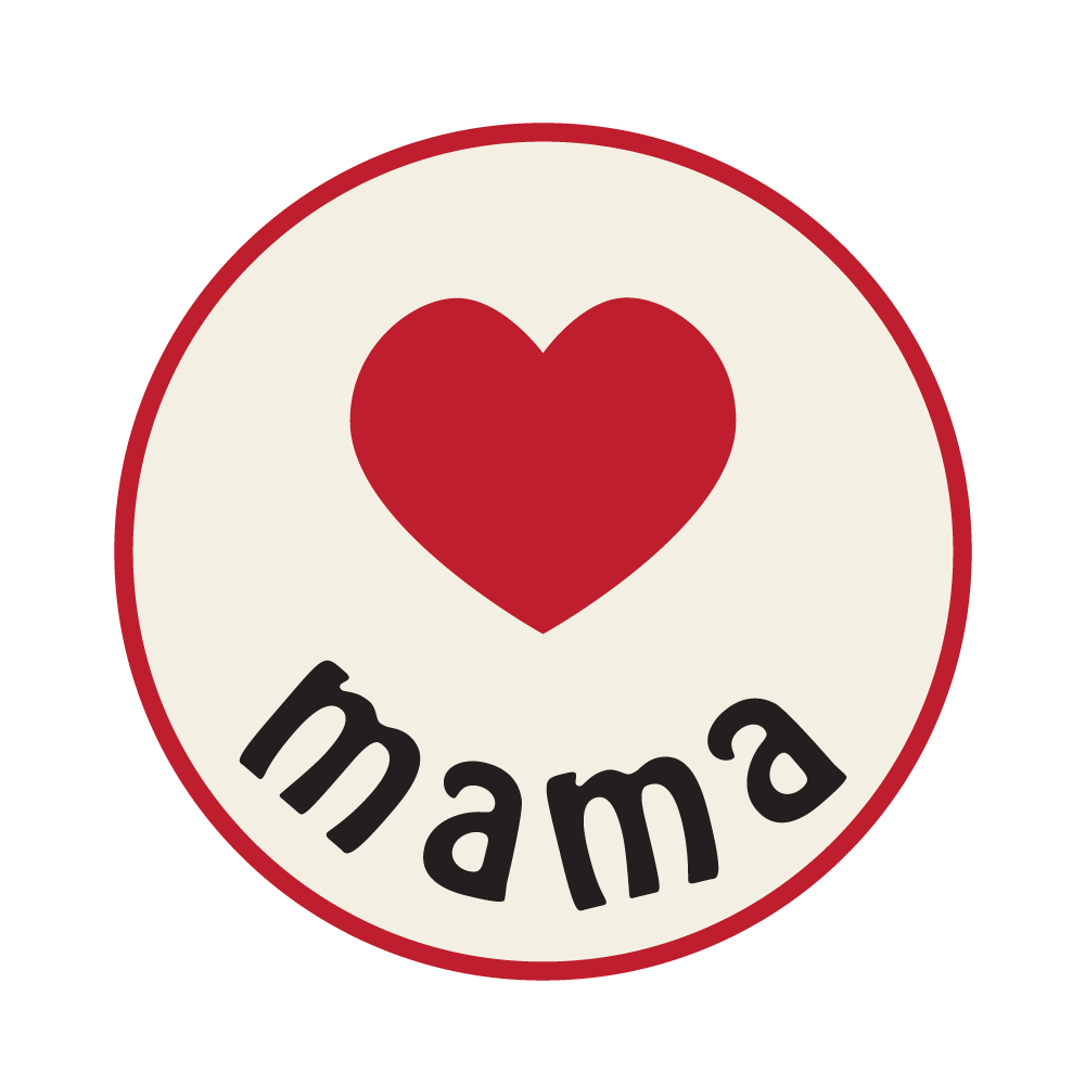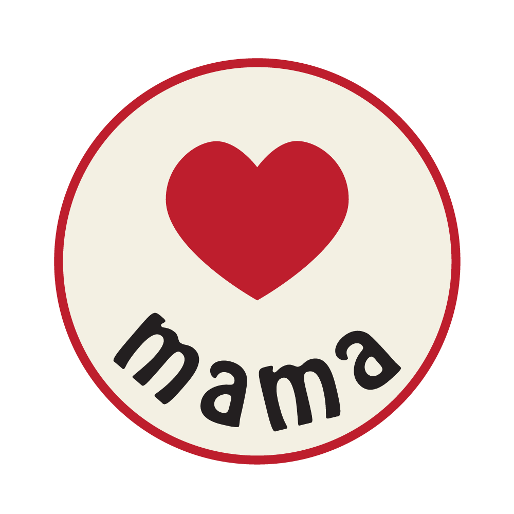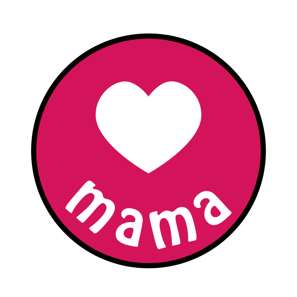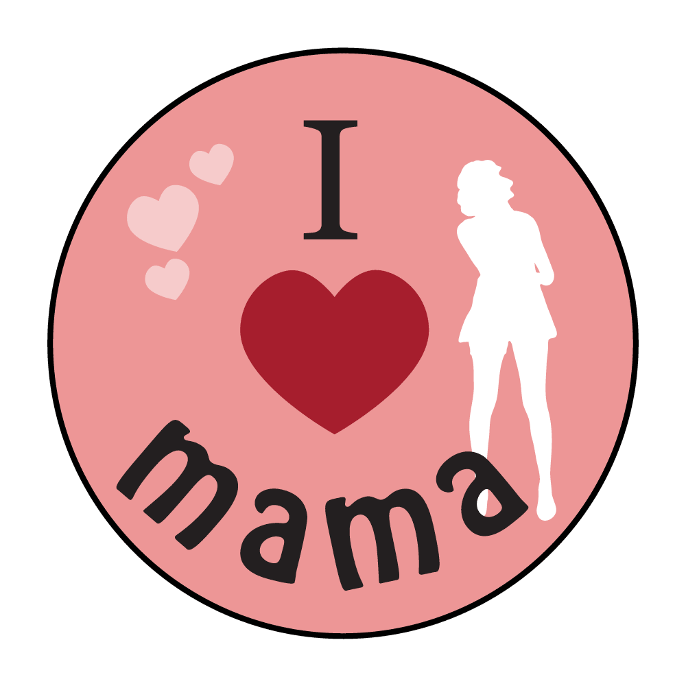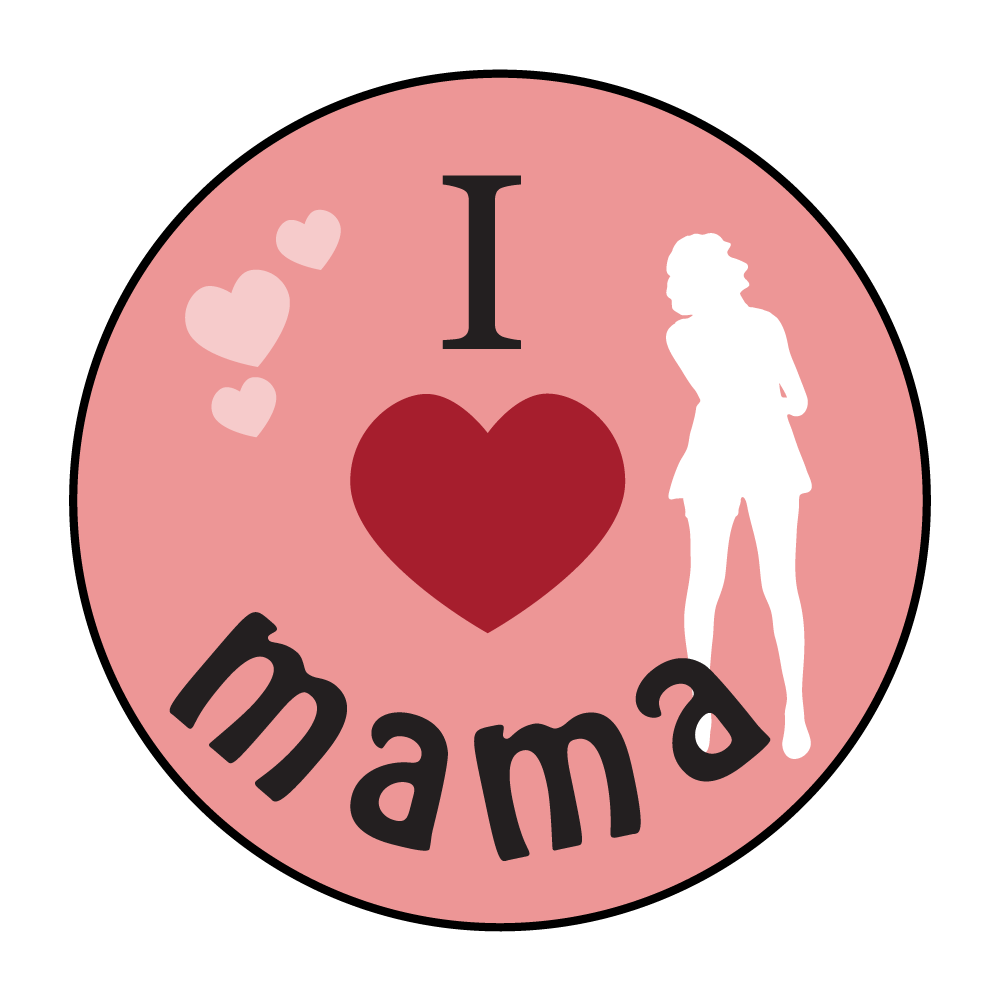 Texo “I love Mama” diseñado junto a la silueta de una mujer o madre. Diseño dentro de un círculo. Dos versiones. Descarga el archivo de imagen en formato GIF, PNG y SVG.