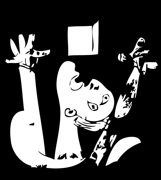 Ilustración a partir de un dibujo creado por Picasso en el Guernica. Un hombre extiende sus brazos hacia arriba y clama auxilio mientras se abrasa por el incendio.