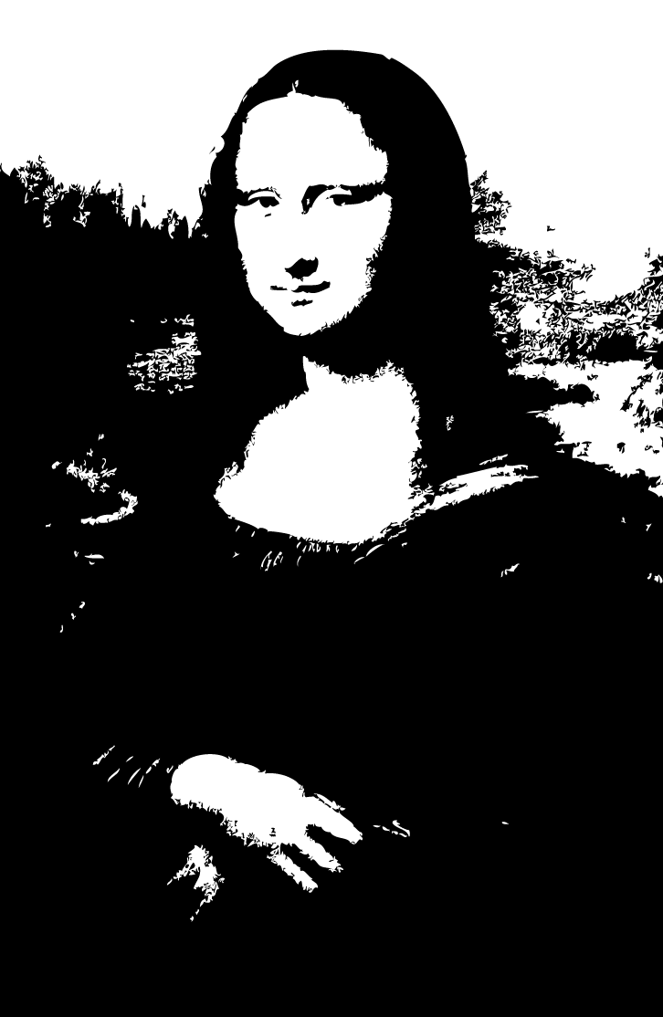 Dibujo simplificado de la pintura de Leonardo Da Vinci, La Mona Lisa o la Guiconda. Formas básicas del rostro de la mujer con la sonrisa más famosa del mundo. 2 versiones.