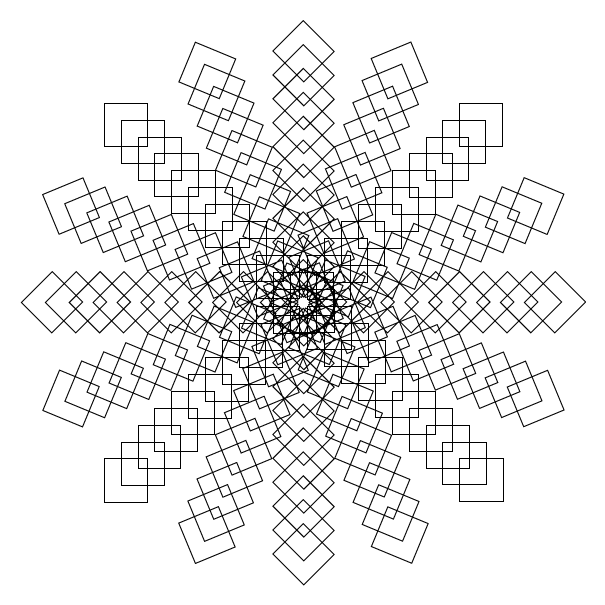 Dibujo con líneas negras sobre fondo blanco. Diseño de un mandala con formas abstractas, geométricas y cuadradas. Ilustración para colorear y meditar pintando. Se puede descargar el archivo en formato SVG vectorial, escalable y editable para obtener tamaños más grandes y con calidad.