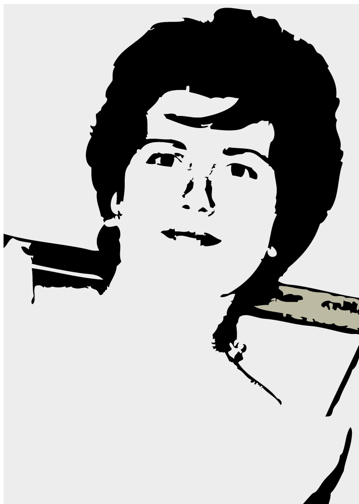 Ilustración de una persona, una mujer, retrato que mira directamente a la cámara.