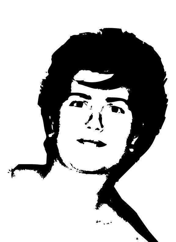 Retrato de una mujer hermosa, morena y de piel blanca. La ilustración muestra una joven con expresión tranquila y feliz.  Cabello y ojos negro.