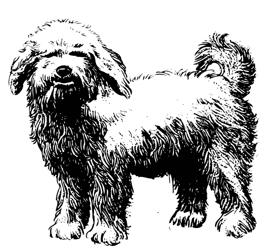 Pariente cercano del Maltés, el perro de raza Boloñés es un buen animal de compañía, de pelo blanco, ojos grandes, orejas colgantes y cola curvada sobre el dorso. EL dibujo muestra un ejemplar de boloñés simpático y joven.