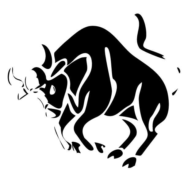 Símbolo esquemático del horóscopo Tauro y figura del Toro que lo representa. Ilustraciones en formato SVG y gif.