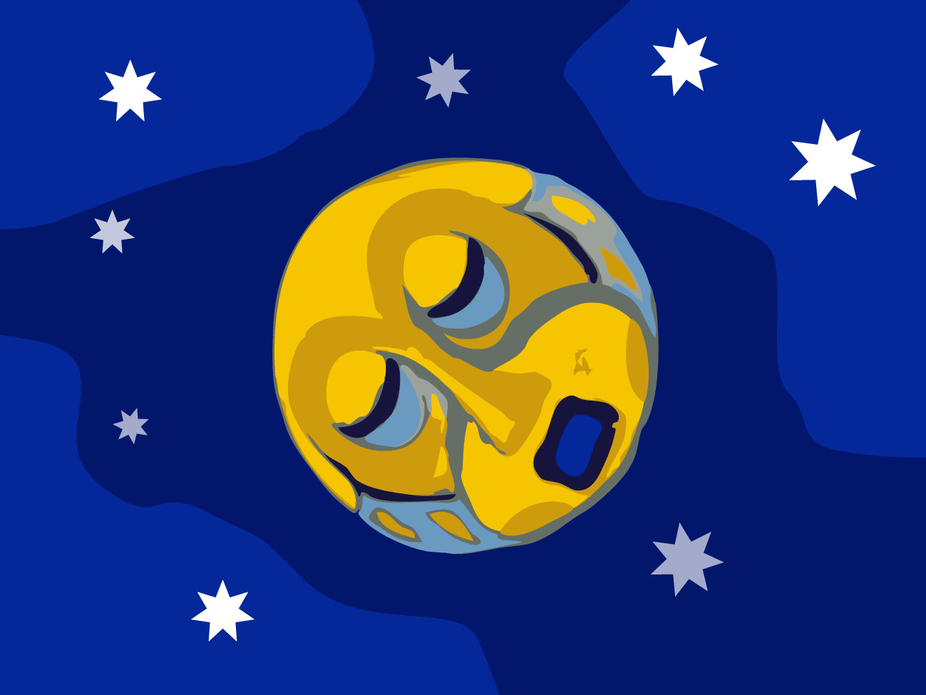 Ilustración con una esfera redonda y de color amarillo. El rostro del sol, con ojos, nariz y boca. El sol duerme en un cielo azul marino y con estrellas. Ilustraciones artísticas estilo Naïl o infantil. Descargar la ilustración libre en formato GIF.